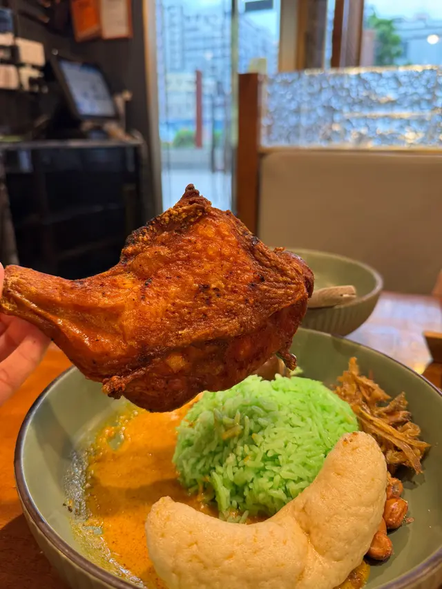 炸雞外脆內嫩,娘惹咖喱香辣中帶點椰香🥥同傳統馬來咖喱好唔同😮椰漿飯煮得剛好,椰香味淡淡哋,同濃味咖喱出奇地夾!
