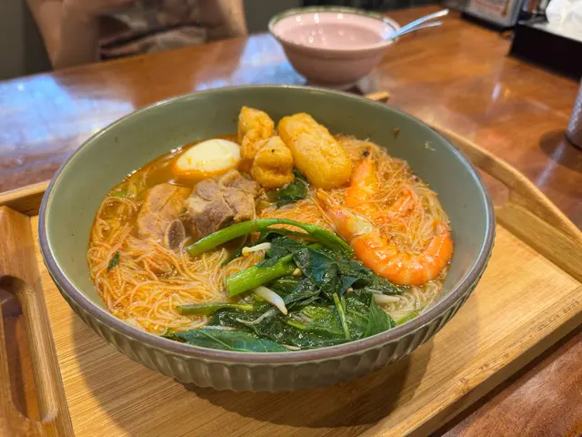 湯底鮮甜帶辣,飲得出用蝦頭熬製🦐麵條吸盡湯汁精華~排骨燜得軟淋,蝦亦新鮮彈牙,鍾意食辣嘅朋友必點!