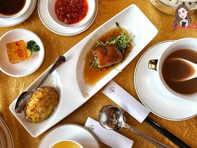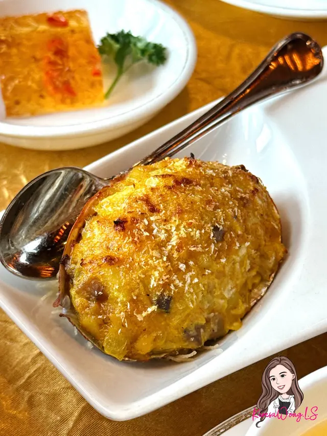 是日養生湯為眉豆湯, 香甜滋潤; 鮑魚切粒加以葡汁焗, 特色美味, 而海參非常厚切, 爽口彈滑。