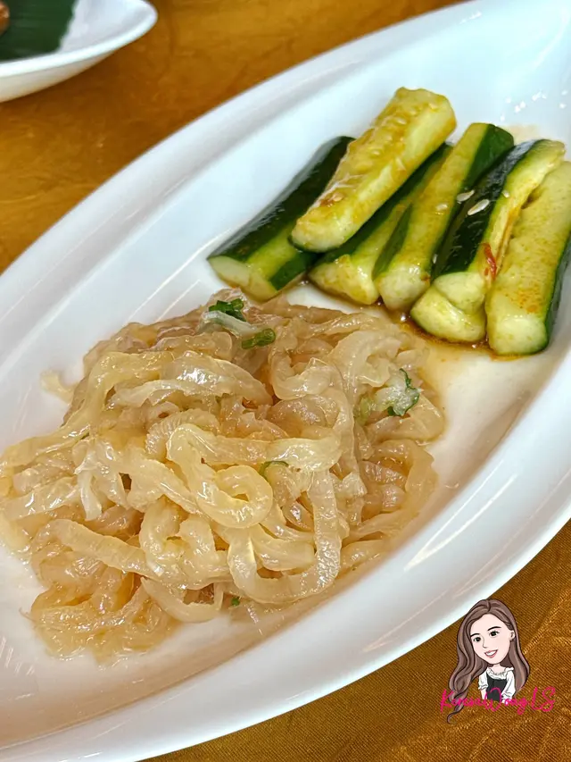 海蜇青瓜: 海蜇超爽口彈牙, 平時去飲都係分得幾條, 宜家可以大大啖當麵食, 豪啊!