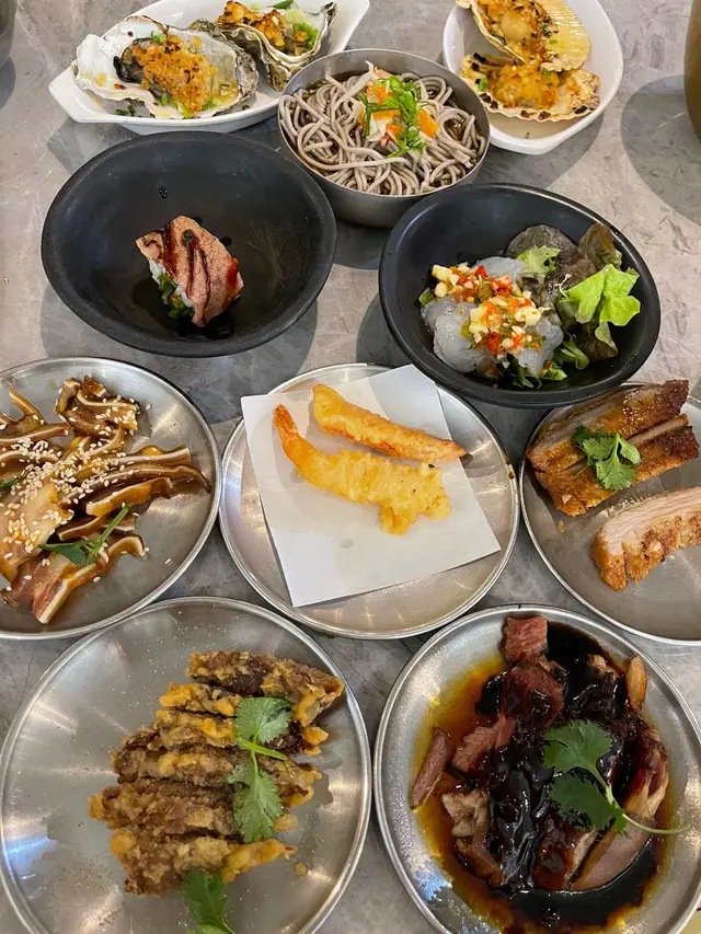 海鮮拼盤嘅鮑魚軟腍帶有少少酒味,北海道角螺刺身帶有天然的甜味,口感爽脆彈牙。個海鮮拼盤拼出視覺的震撼感,無論咩角度打卡都好澎湃。大閘蟹啲殼易剝又唔易碎,入面d 膏係爆漏出嚟,十分治癒兼滋補。
