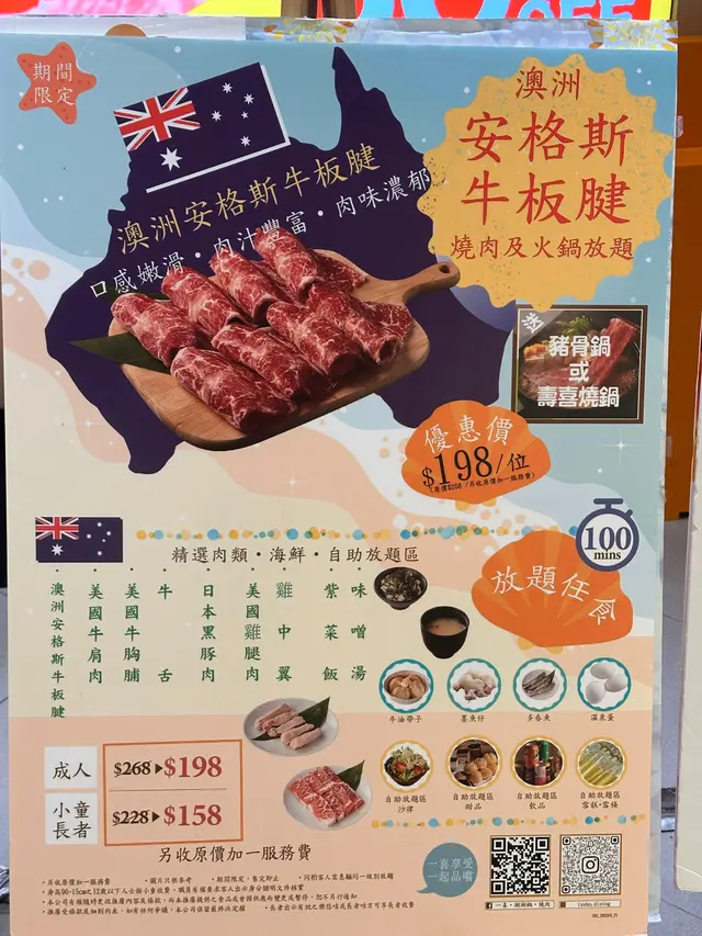 今晚同朋友去試呢間燒肉店,目標明確:就係衝住佢個 「澳洲安格斯牛板腱燒肉餐連壽喜燒鍋」套餐!連埋加一 $225,睇落幾抵玩,一於試真啲!