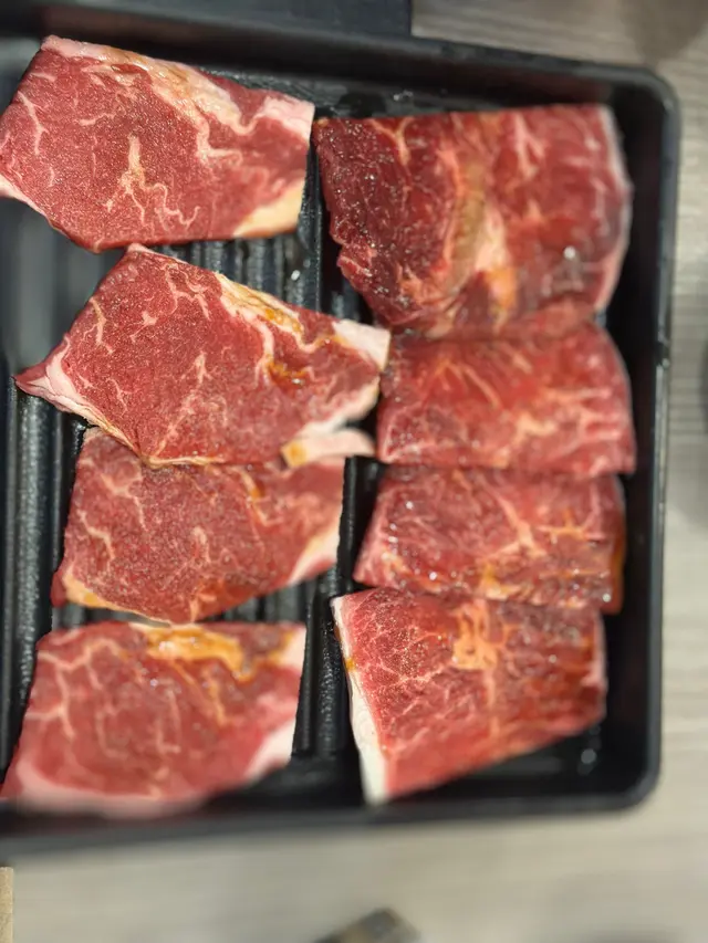套餐雖然主角係牛板腱,但佢哋仲有供應美國牛肩肉、牛舌、豚肉、牛胸肉、雞腿肉等等。我哋另外點咗啲牛肩肉同豚肉試下。牛肩肉脂肪少啲,肉味突出,鍾意實淨啲口感嘅朋友會鍾意;豚肉燒香後油脂溢出,配飯一流;雞腿肉就預期之中嘅嫩滑。整體肉類選擇算多,質素對得住價錢。