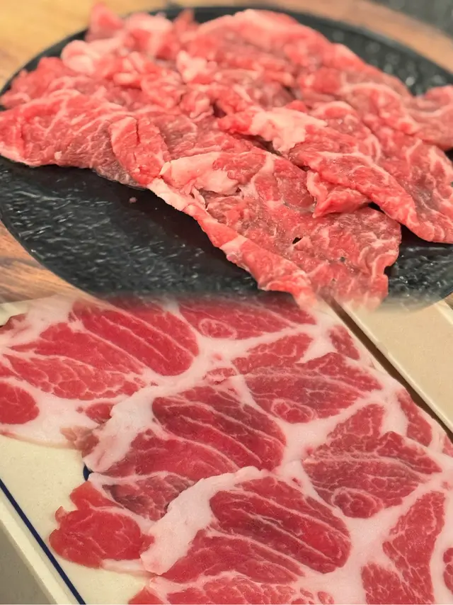 肉類: 豚肉片、肥牛、牛肉,肉質對辦。