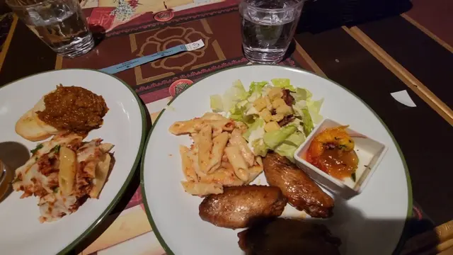 廚師拎盤野出黎一放低,XX#@#%&X都係長通粉黎既,完全一樣既雞翼同完全一樣既長通粉點解要分開放?
