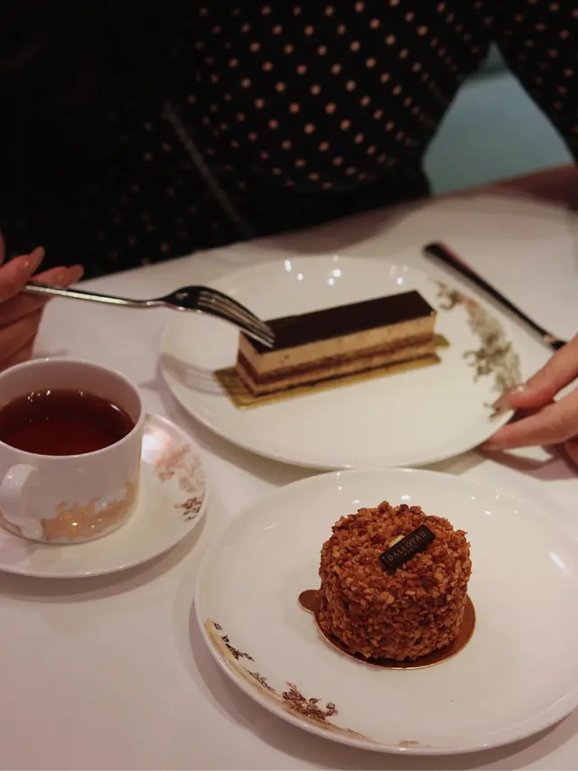 🗼300多年的法式宫廷甜品🇭🇰终于在香港吃到啦 Catbao等級42024-04-061K 瀏覽 關注 🖤整家店是高级低调的奢华感,黑白映衬。绿丝绒座椅配红色壁画,让你恍惚穿越回巴黎宫廷🌰Dalloyau用餐厅名字命名的甜品必须试一试!被各种果仁包裹,一口下去太香啦~榛子脆粒外层下是软软的杏仁蛋白霜和忌廉,爱吃果仁的千万不要错过啦🍫Opera招牌歌剧院足足有8层,朱古力酱、咖啡忌廉配合杏仁海绵蛋糕,甜而不腻,口感醇厚,搭配金箔,低调的奢华,不愧是流行了几十年的招牌蛋糕☕️配一杯红茶经典法式下午茶get~超满足的🍪临走带一份新鲜出炉的巧克力曲奇,包装好美颜值和口味都不错~2以上食評乃用戶個人意見 , 並不代表OpenRice之觀點。讚好分享🗼300多年的法式宫廷甜品🇭🇰终于在香港吃到啦 DALLOYAU https://s.openrice.com/QrbT05abI00檢舉 張貼 評分4味道5環境4服務5衛生4抵食用餐途徑堂食人均消費$108 (下午茶)