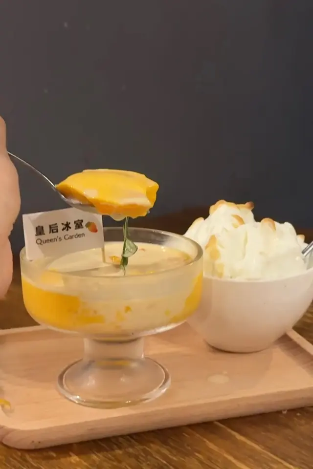 🍮 甜品雙重奏 🥭 芒果布甸:滑溜布甸滿滿新鮮芒果,超香濃!記得要落多點花奶哦! 🔥 火焰雪山:炙燒蛋白霜焦脆,富空氣感!