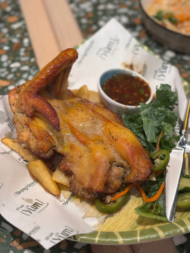 🔥 高潮位:冬陰功湯蝦肉彈牙,香茅椰奶平衡得宜,酸辣尾韻衝喉夠過癮!燒雞半隻飆肉汁,脆皮下油香四溢,蘸青檸辣醬更昇華。