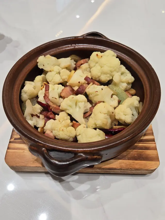 煙燻肉的鹹香濃郁與椰菜花的清甜,爽脆完美配合