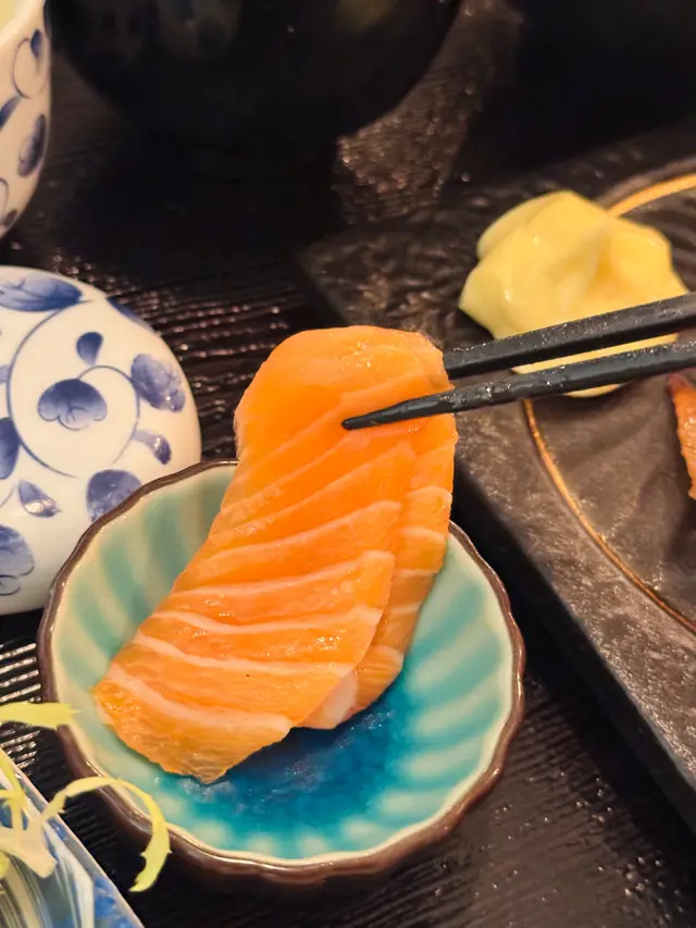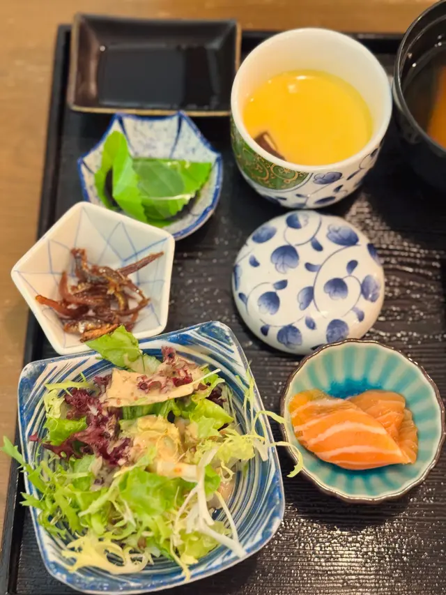 旁邊嘅茶碗蒸滑到似布甸,連埋刺身(當日有肥美三文魚)、沙律菜、小食等,成個set飽到捧住肚走!