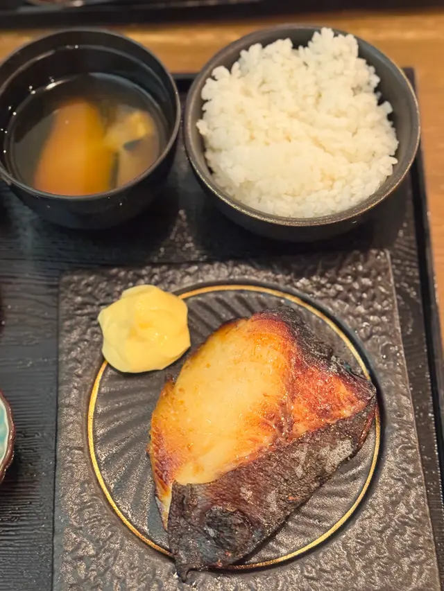 🍱 銀鱈魚西京燒定食 👉 「入口即化嘅魚油炸彈!」 厚切銀鱈魚用京都白味噌醃製,表面燒到金黃微焦🔥一夾就見到雪白魚肉爆出油光!入口先有味噌嘅甜香,跟住係鱈魚獨有嘅奶油質感,魚油甘香慢慢滲出,配埋檸檬汁超解膩~