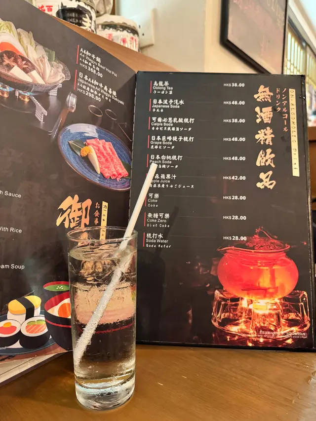 🥩 安格斯肉眼壽喜燒 👉 「和牛級油花!關東風甜醬汁超邪惡」 美國安格斯肉眼切成薄片,雪花紋靚到透光❄️湯底用昆布柴魚熬,再加秘製甜醬油,涮3秒食到濃郁牛香,肉質軟嫩帶微微嚼勁~最驚喜係夏日炎炎,每位客人贈送無糖冰凍梳打水一杯,真係透心涼!