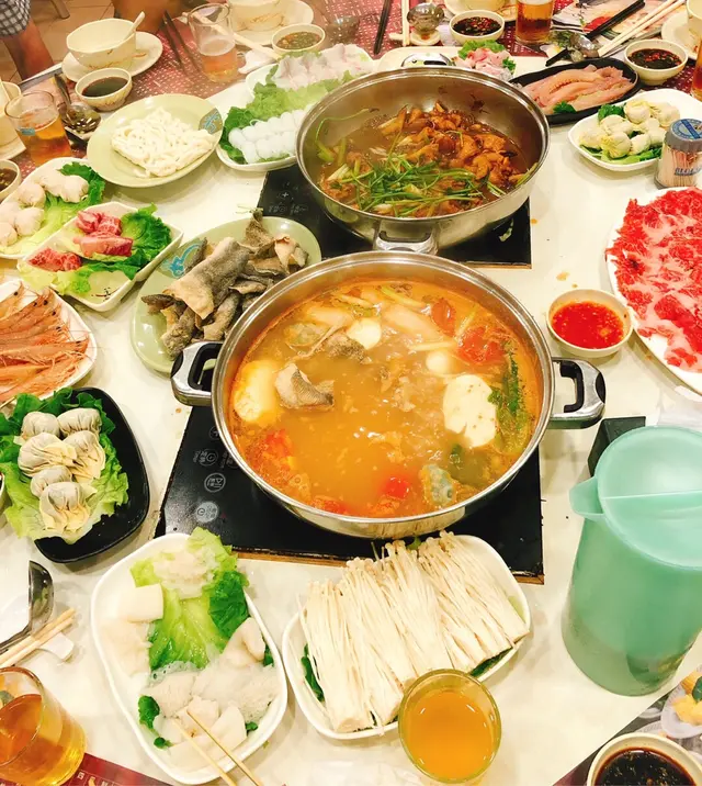 雞煲。等上菜的時候,我地都叫左2碟炸魚片頭,既香口又不油膩,配埋個泰式辣醬,都真係愈食愈開胃。黎到利得,一定要食佢個A牛 (即係手切A級牛肉),脂肪分怖的好平均,超正呀真係,每次食個水準都仲係度,我地12個人叫左2碟,再加左碟牛柳粒,平時出面D 牛柳粒淥完好硬好難咬到,佢呢隻好味又易咬開,好好味。另外我地都叫左好多唔同種類既食物,佢個手打墨魚滑及蝦滑都有好多蟹子係面,仲有蝦串,好新鮮,即叫即串起,所以淥熟左仲係好甜。第一次食佢個