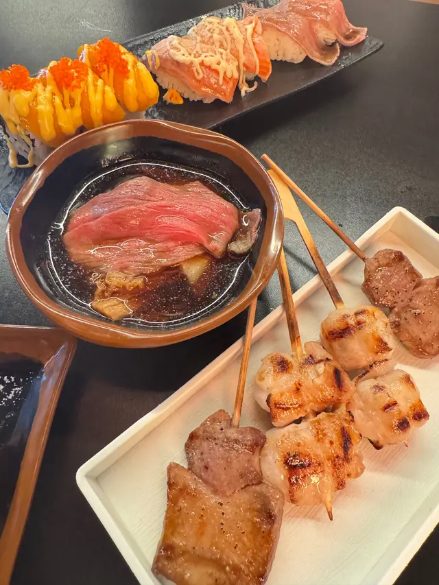 一入去店內氣氛好舒服,帶有典型日式居酒屋嘅暖黃燈光同木質裝潢,感覺好chill。碟碟上桌嘅和牛拖羅分切得好靚,每片厚薄適中,肉質粉嫩帶油花,一入口即刻感受到入口即溶嘅口感,脂香四溢,真係正到唔得。唔好錯過佢哋嘅特製燒汁,輕輕蘸一蘸,令味道更層次分明。