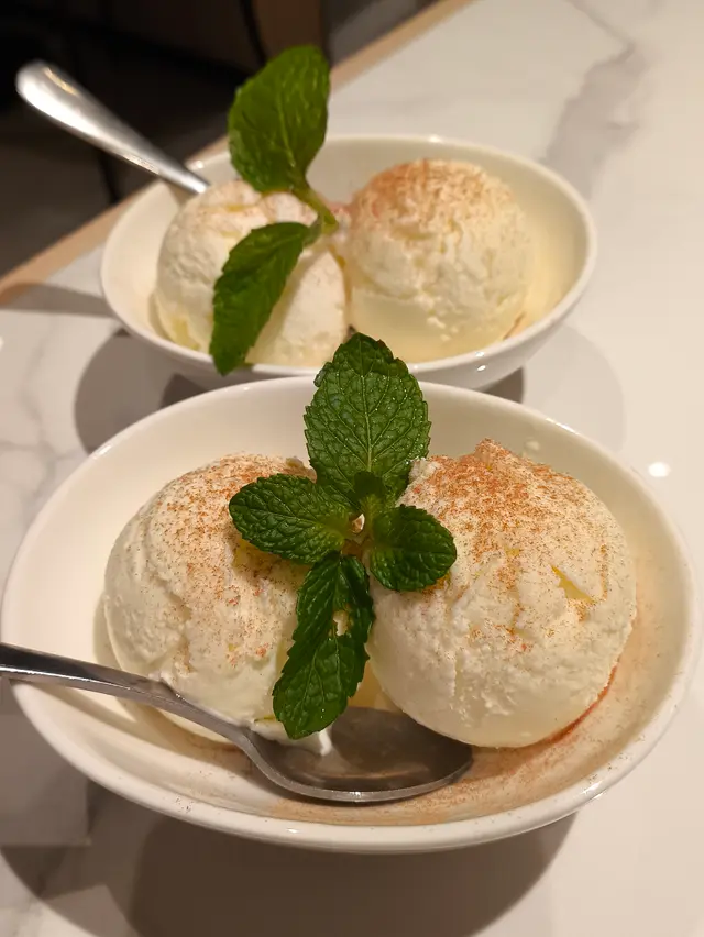 炒飯材料有青豆紅,蘿蔔粒和蛋絲,配有小棠菜,廚師用果汁和洋蔥烹調豬扒,豬扒口感腍滑,油香肉滑,酸酸地甜甜地好醒胃,炒飯粒粒分明軟硬適中,有鑊氣味,餐飲有熱檸水,加配椰子雪糕。