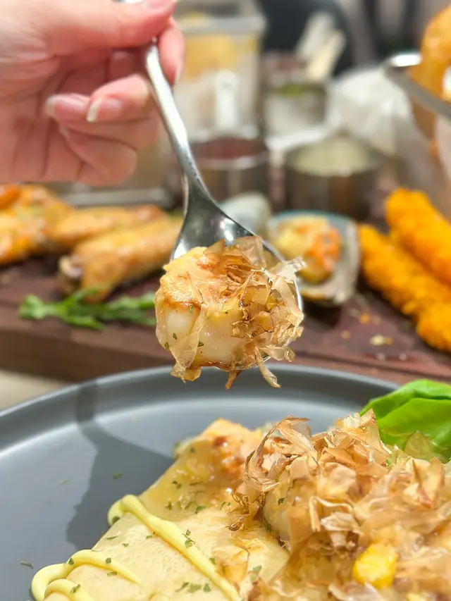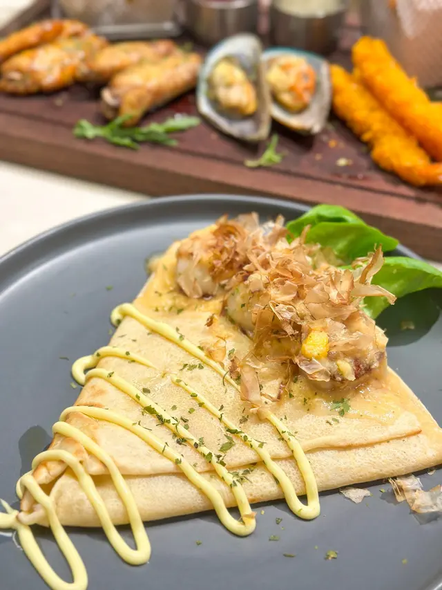 主菜嘅選擇之一,烤至稍脆嘅可麗餅,入面夾住勁多蟹肉!北海道帶子都幾大粒,頗為鮮甜!