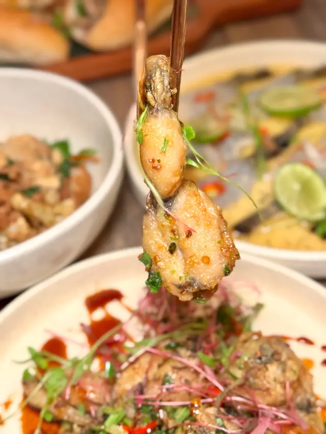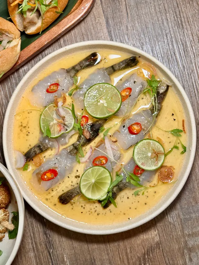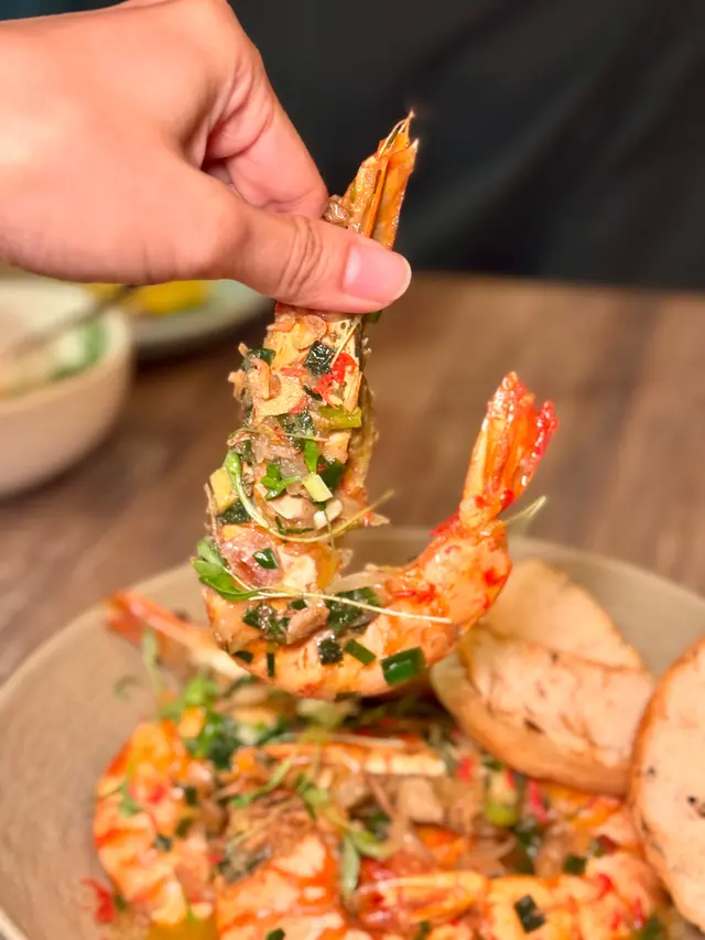 虎蝦新鮮彈牙,蘸上柑桔魚露汁,酸甜醒胃!乾蔥碎增添辛辣層次,蝦肉爽口帶微甜,魚露汁平衡得剛好,唔會過鹹,反而帶出柑橘清香,作為開胃菜簡直滿分👍