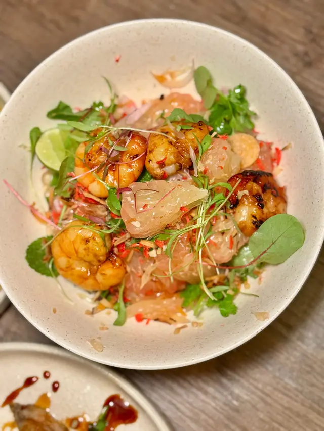 蜜柚清甜多汁,配搭脆椰絲同薄荷葉,口感豐富!椰糖魚露汁甜甜酸酸,帶微微炭燒香,開胃又清爽,絕對係夏日必點☀️