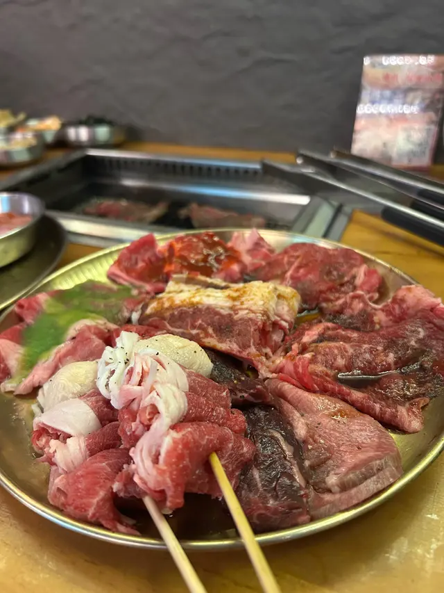 🐮澳洲和牛M7牛板腱有4款唔同口味(黑椒鹽、果汁口味,韓式醬汁同蔥味)油花分佈平均,肉質軟嫩;美國安格斯封門柳厚切,juicy肉味濃;荔枝牛肩胛串,荔枝嘅香甜多汁中和左肉嘅油膩