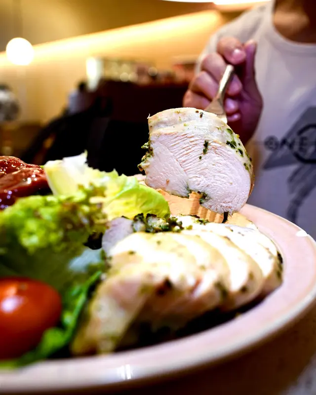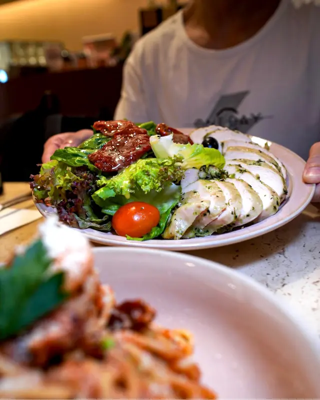 上檯嗰陣俾佢嘅份量驚豔到,兩個人share都好夠🤩 慢煮雞胸厚薄適中而且真係有好多塊,肉汁軟嫩多汁,一啲都唔嚡🍗 面頭嘅青醬濃度啱啱好,增添風味同時又唔會蓋過雞肉嘅鮮甜味🍃 沙律菜好爽脆,配以檸檬醋醬開胃一流,適合想keep fit嘅大家💪🏼