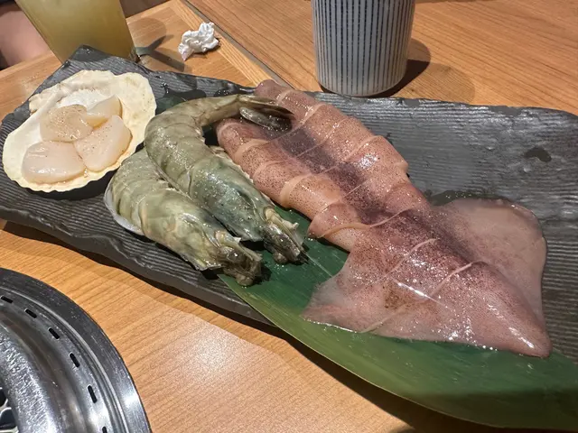 有大筒魷魚、帆立貝及虎蝦,魷魚大隻厚身,肉質彈牙,帆立貝鮮味多汁,虎蝦好大條蝦膏滿滿