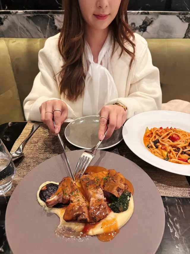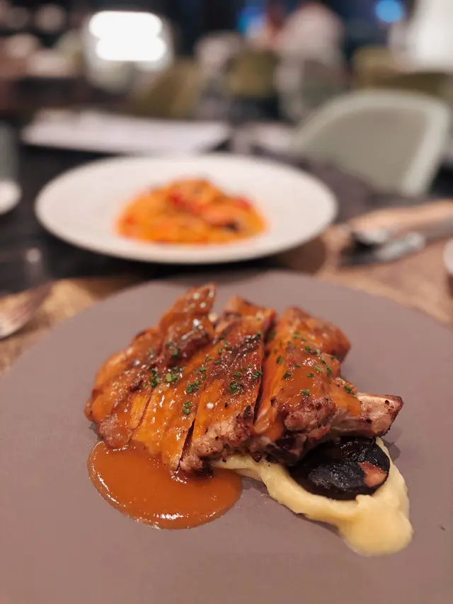 1. 慢煮西班牙豬鞍洋蔥及薯蓉:豬鞍烹調到啱啱好熟,十分香嫩Juicy,的確係慢煮先做到嘅感覺。在沾上薯蓉同埋燒汁,冇得彈!