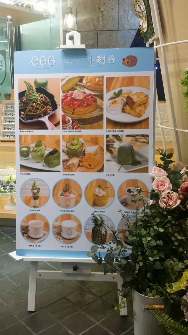 大大的餐牌所展示的甜品款式好吸引喔☺ 一分為二的店面面積頗大,分間了為客人配眼鏡的eGG,另一面是主打輕食甜品的小甜谷,你或者會好奇「眼鏡跟小甜谷」之間又有什麼連帶的關係,原來eGG的宗旨是顧客最快可以在配完眼鏡後一小時取貨,做到急客人所急,在等候同時可以食點東西🍴