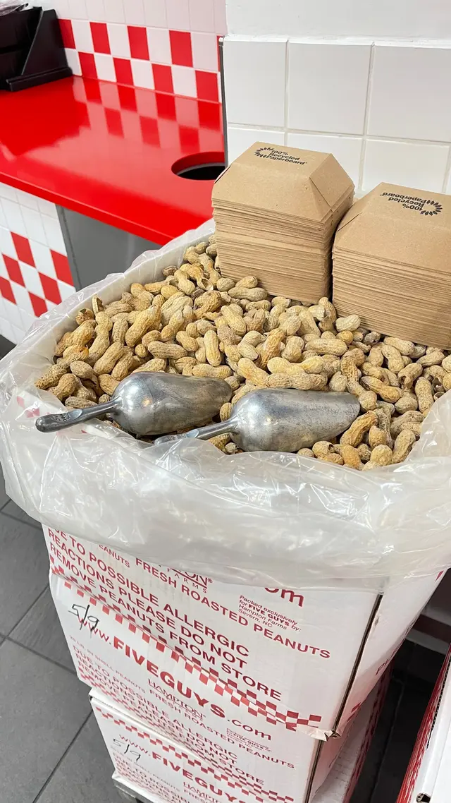 Five Guys的餐廳環境非常整潔,桌椅舒適,給人一種放鬆愜意的感覺。員工們非常友善和熱情,提供了出色的服務,讓我感到賓至如歸。😍