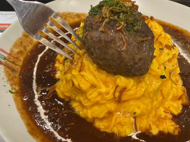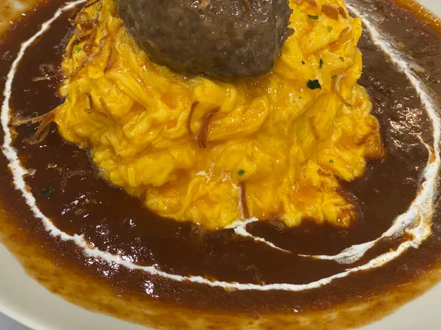 整個蛋包飯造型非常漂亮,咖喱汁有白色醬花紋,鮮黃色的雞蛋看和吃起來覺得很嫩,球形的漢堡扒,使到每一啖的牛肉味都滿是鮮味的肉汁