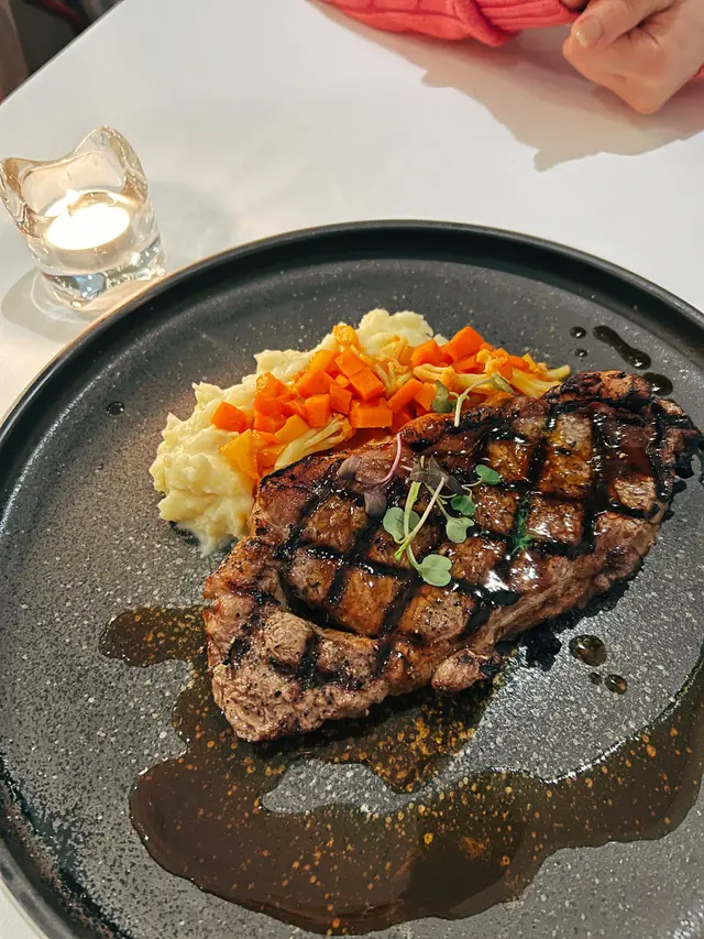 好重炭燒味😋叫左Medium rare,但肉質唔算太軟,勝在都重牛味🐂,旁邊有薯蓉做配菜。前菜配左個餐湯,最後甜品叫左椰子🥥雪糕,個雪糕yumyum,好濃椰子味!