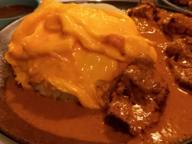 馬來咖哩滑蛋雞肉蓋飯,日式滑蛋蓋飯加馬來咖哩混合的菜式,咖哩都算幾辣有2隻辣椒度數,雞肉炸得少少脆口。