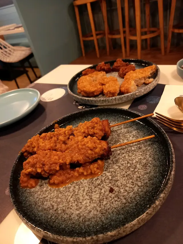 小食頭盤馬來沙嗲雞髀肉串、馬拉盞一口蝦多士、手打馬來蝦餅, 沙嗲夠正中宗, 用雞髀肉特別滑。一口蝦多士炸得好脆,味道亦特別。手打蝦餅肉質彈牙,加特色醬汁好嘢味。