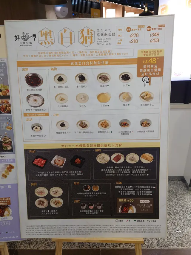 At lunch, the prices are cheaper. They also offer a 60 minutes lunch deal where you don't get all you can eat meat but you still get access to the buffet area. This menu is no placed at the front but you need to ask for it. We decided to choose the $98 set and added $14 for papaya and soymilk soup as our hotpot base.