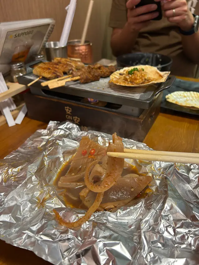 秘製醬燒雞中翼 一串有3隻 雞中翼燒得金黃酥脆 外層都係有微微焦香 而內裡肉質嫩滑😋😋