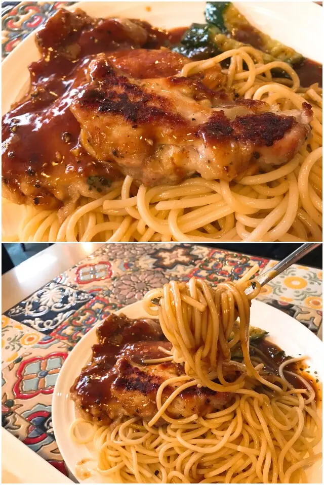 香煎美國雞扒配意粉(黑椒汁)