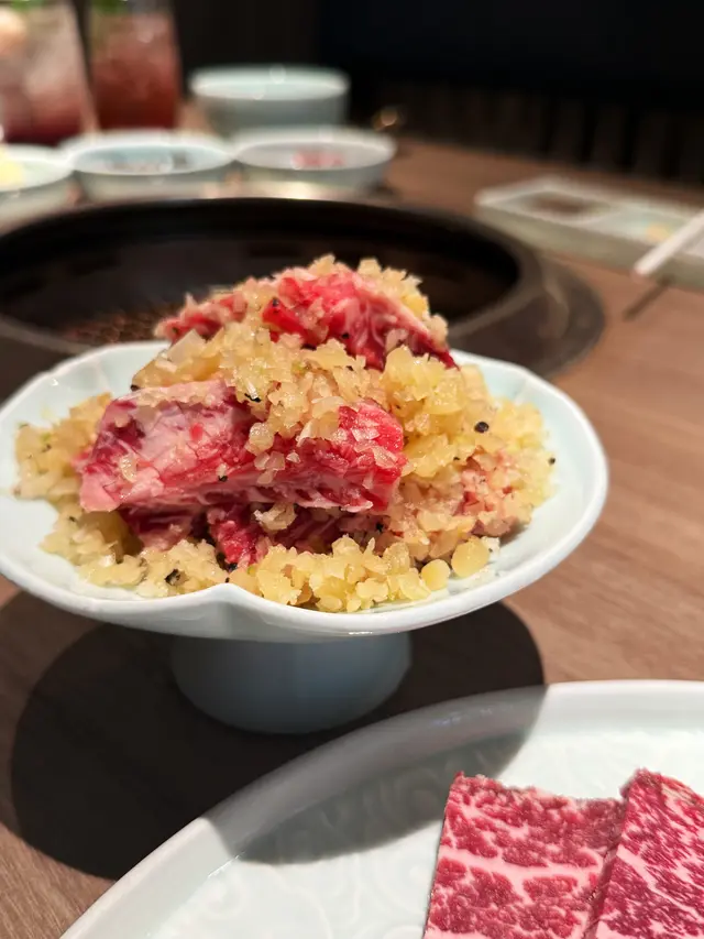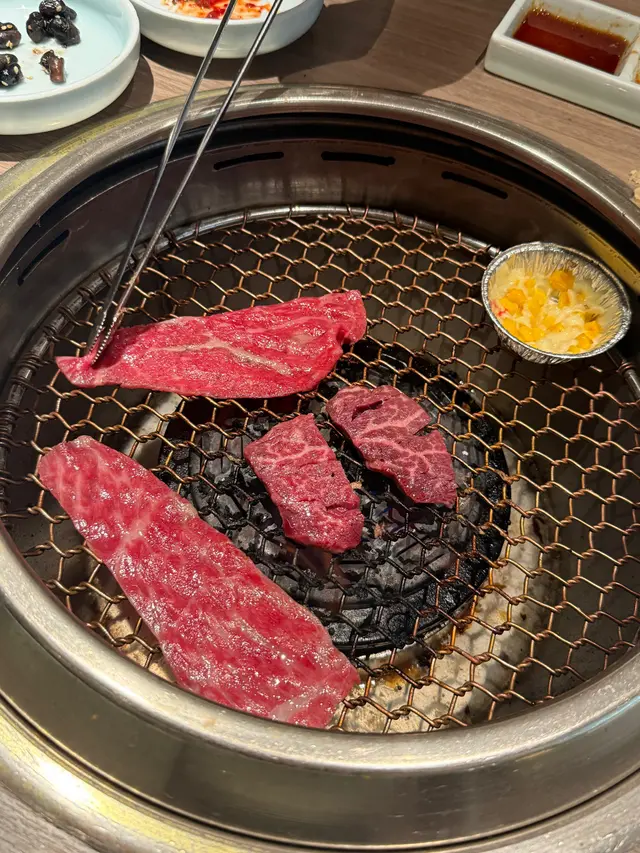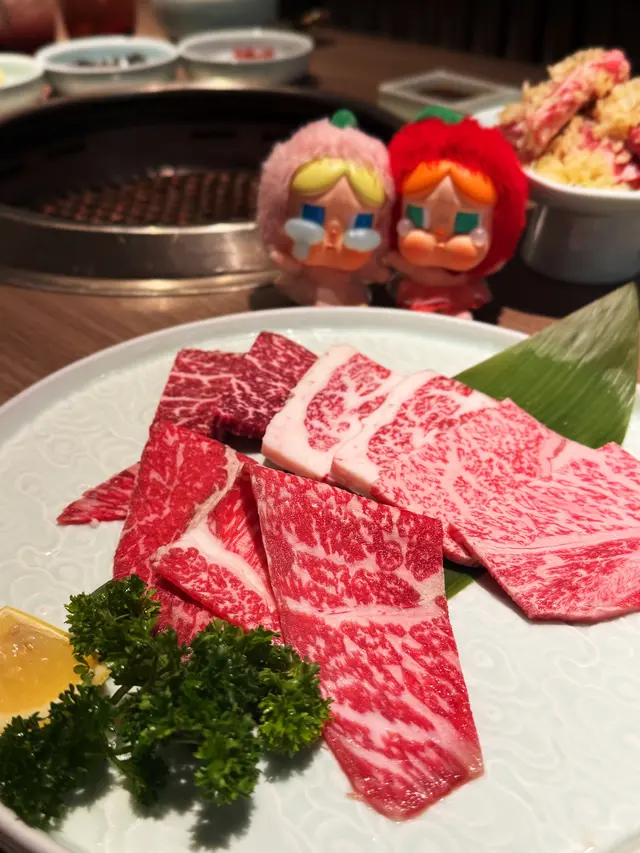 包含薄切肩肉、牛柳、赤身及和牛霜降肉,每一片肉質都相當新鮮,燒烤後外焦內嫩😌,口感十足。特別是和牛霜降肉,油花分布均勻,入口即化,實在令人陶醉🤤