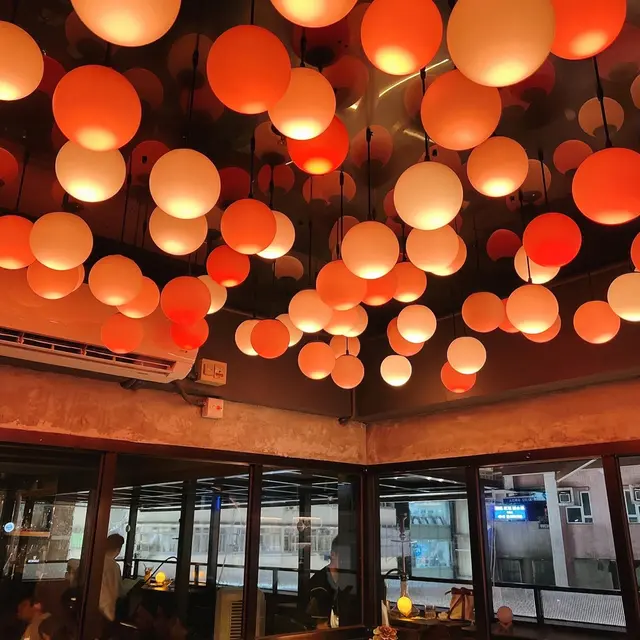 環境方面,餐廳整個格調偏暗,用唔同既燈光照亮餐廳。天花板有黃橙相間既波波燈,一行入餐廳已經好吸睛。每張台另外有個月球波波燈,打卡一洗(仲可以變色添😍)。