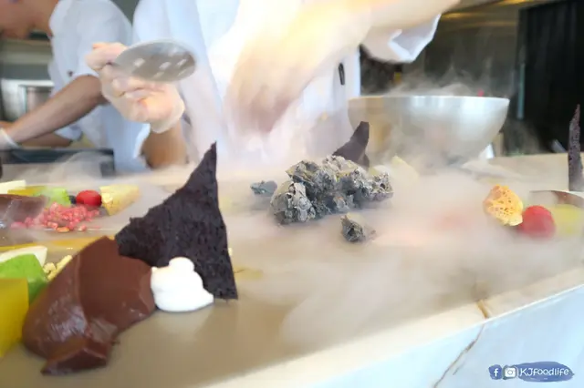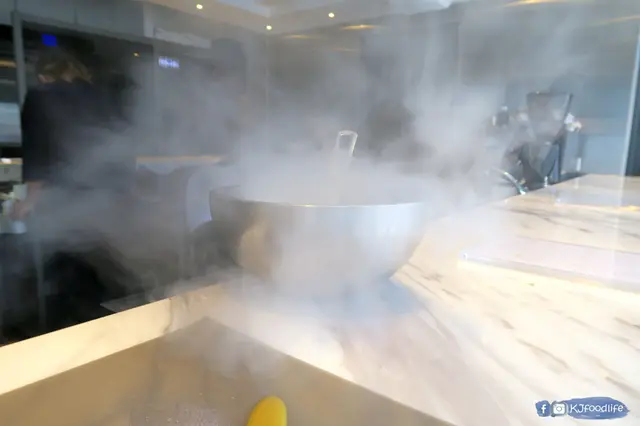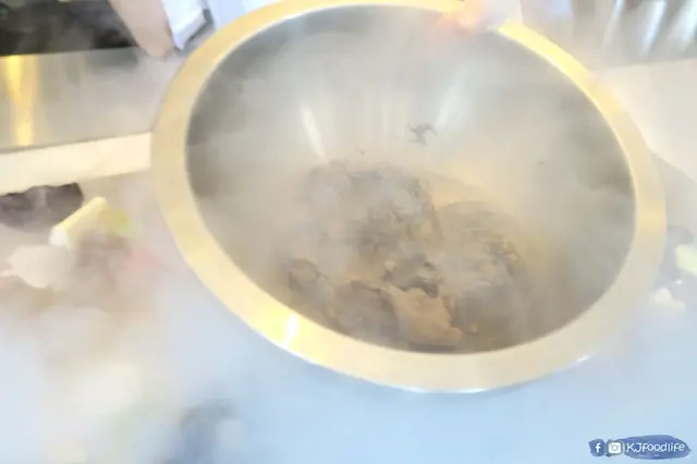 之後用上左成個過程最靚既一幕,用上左-190度既液態氮整雪糕,一倒落去就勁多煙飄哂出黎,係正你面前整真係成個仙境一樣。成個過程其實有好多唔同既互動,包括介紹食材,試畫試整都可以。