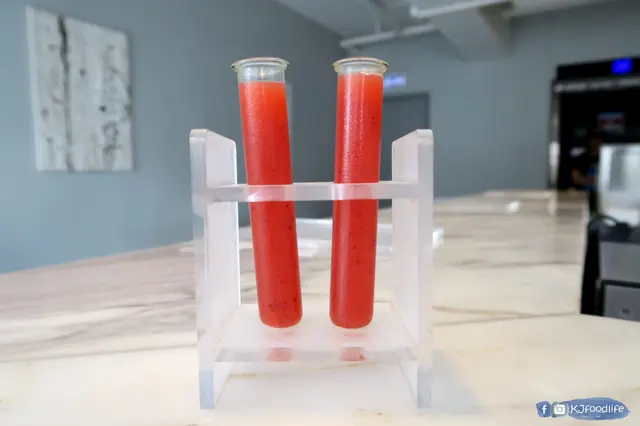 熱辣辣既天氣,貼心既店員一黎就整個凍冰冰既Welcome Drink真係無得彈,見到用上左新鮮既士多啤梨整出黎用料夠充足。