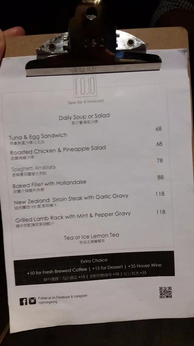 Lunch冇tapas供應,不過有$68至$118不等嘅set lunch,包湯或沙律、茶或凍檸茶,可另外加錢要每日甜品、即磨咖啡及紅白酒。夜晚嘅tapas種類幾多,例如西班牙燒乳豬係$298、大嘅海鮮飯係$338... 當然要睇埋個份量啦😂 以呢度環境嚟睇,咁嘅價錢合理吖