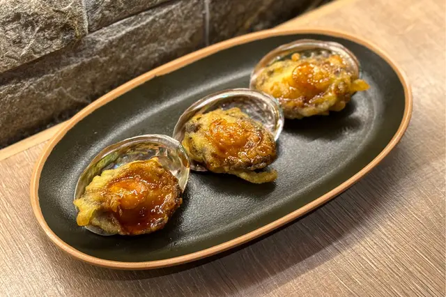 除了燒肉配料外,亦有紫蘇蝦排、涼拌蕃茄透抽等台灣夜市小食,柚子鮑魚酥炸過後口感外酥內彈,加上柚子醬份外香甜。