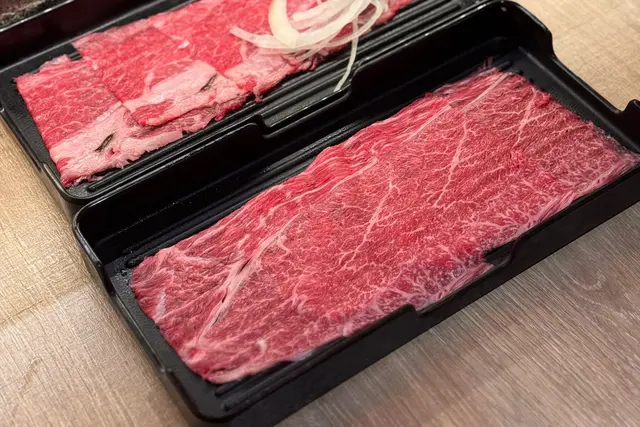 「日本A4+和牛饗宴」重點當然是日本A4+和牛、日本A4+和牛壽喜燒及日本A4+醬燒一口和牛丁,油花細緻均勻,油香豐腴而肉質軟嫩,但澳洲M8和牛肩胛、手切安格斯牛小排、澳洲全血牛腹肉等其他牛肉依然值得一試,尤其是澳洲M8和牛肩胛肉味香濃,與日本A4+和牛各有千秋。