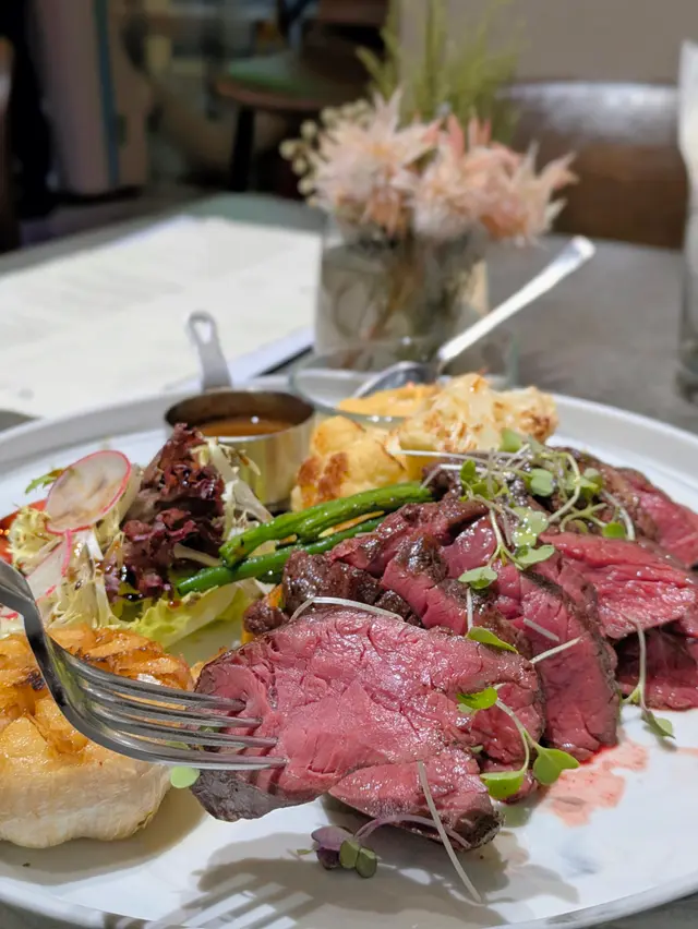 真Medium Rare,切面粉嫩嘅靚色,肉汁飽滿!外焦香內嫩,火侯控制得好好!