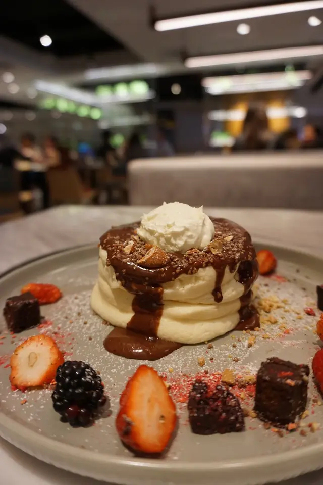 Pancakes蛋香味濃🥚,並非空氣感,質素較綿,而且濕潤。朱古力醬不似dark chocolate🍫,尤幸不會過甜,不會膩。旁邊的雜莓新鮮🍓,能夠解膩。最後,伴碟的Brownie也非常出色,口感幼滑,朱古力味特濃!整體還算不錯。