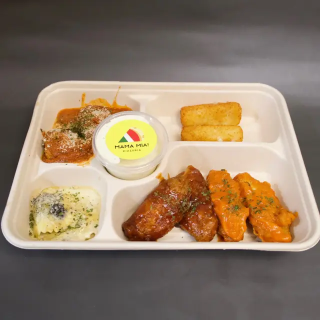 除咗Pizza之外 我哋仲叫咗一個Mama mia小食拼盤同埋蒜香虎蝦辣椒意粉 🍝 小食拼盤一次過滿足晒你五個願望 有齊炸芝士Mama Mia肉丸 BBQ sauce雞翼 余均益雞翼同松露意大利雲吞👅