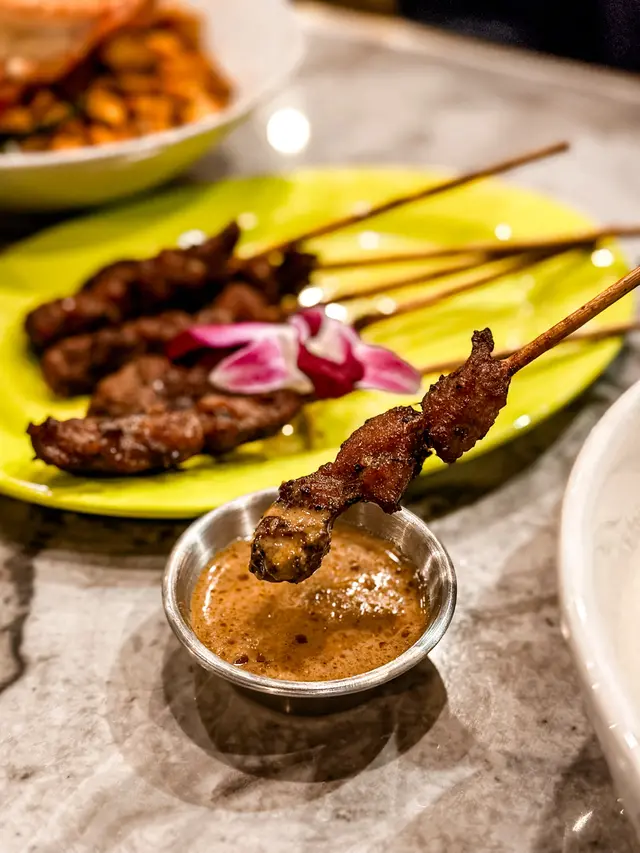 即叫即燒,炭火香衝鼻而來!豬肉邊位燒到微脆,咬落juicy到爆汁,點埋個濃稠花生醬,甜鹹交錯,食六串都嫌唔夠喉~