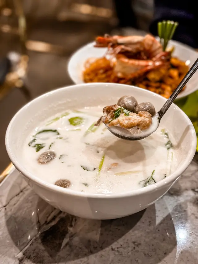 白冬蔭功一上枱就知唔簡單!湯底奶白似足泰北秘方,南薑香氣溫柔湧出,椰奶滑到似絲綢,但辣勁偷偷哋爬返上喉嚨~雞肉吸盡精華,飲完成個胃暖笠笠,個人私心推薦!