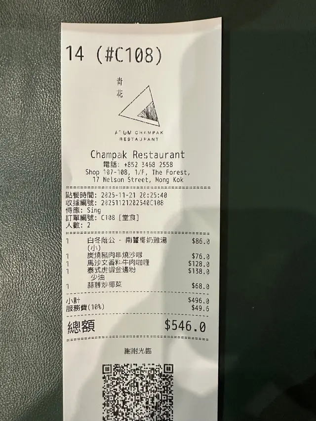 計埋價錢,兩個人五百零蚊食到捧住個肚走,喺旺角呢個地段,絕對係抵食夾大件!臨走前見到隔籬枱嗌嘅芒果糯米飯都好吸引,已經mark定下次再嚟試~ 不過溫馨提示,平日晚飯時段幾乎必滿座,想唔使等就記得預約定先啦。