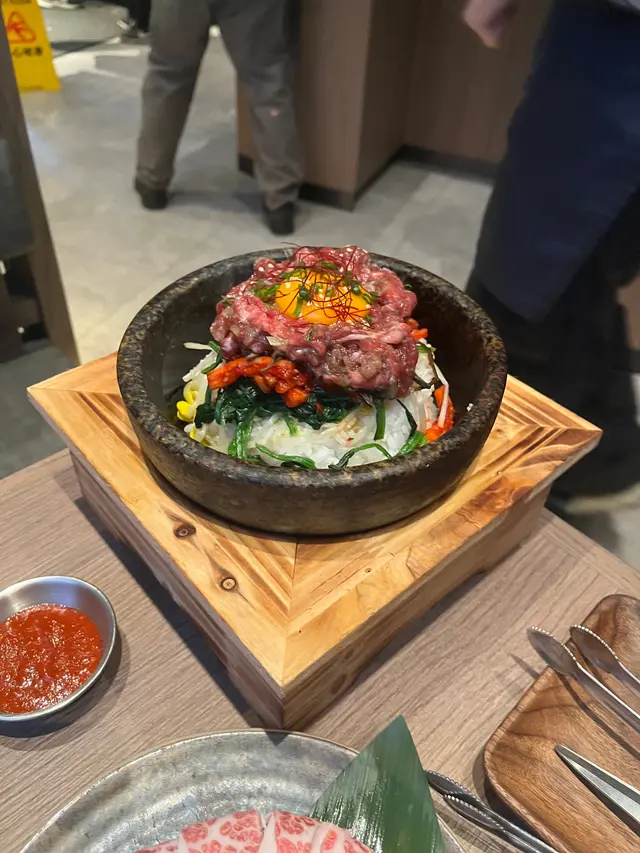 ✨生牛肉做石鍋飯就算冇熟晒都冇問題, 肉質好軟滑, 份量又多, 加上生雞蛋, 韓式辣醬, 菠菜同芽菜等撈勻勁好食