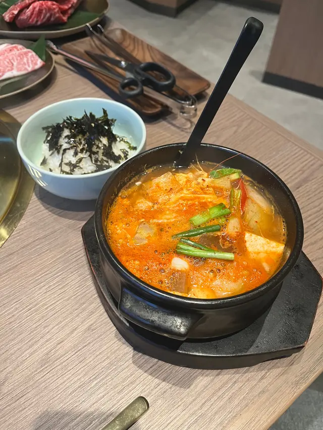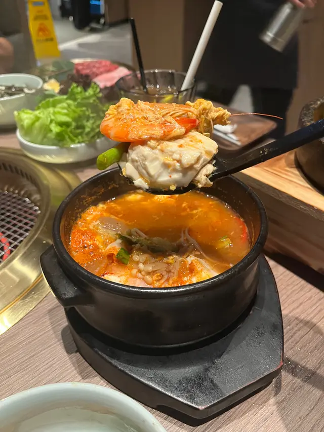 💯menu上有辣椒仔icon但唔算太辣, 反而海鮮甜味同泡菜酸味更突出, 有大量蝦, 蜆, 青口等等, 豆腐麵好軟滑, 索晒湯後送飯一流